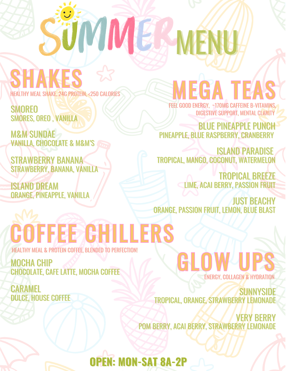 - Shakes: Strawberry Banana, Island Dream.